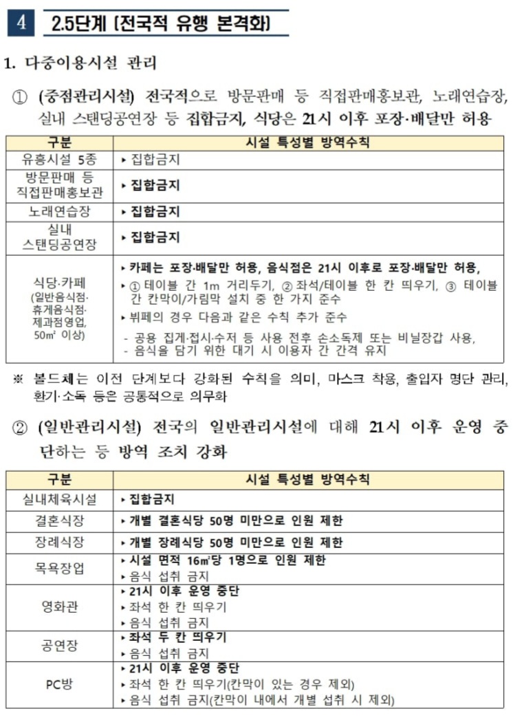 수도권 거리두기 2.5단계 격상에 기준이 기존의 나눈 5단계와 다르다.