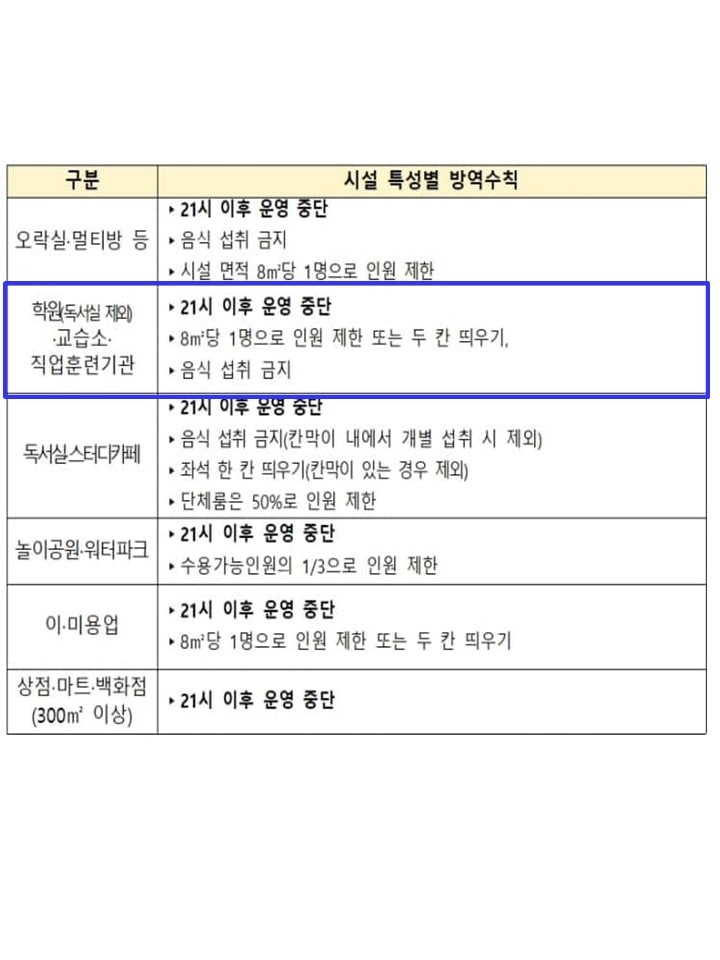 수도권 학원, 교습소 집합금지 제외해주시길 바랍니다. > 대한민국 청와대